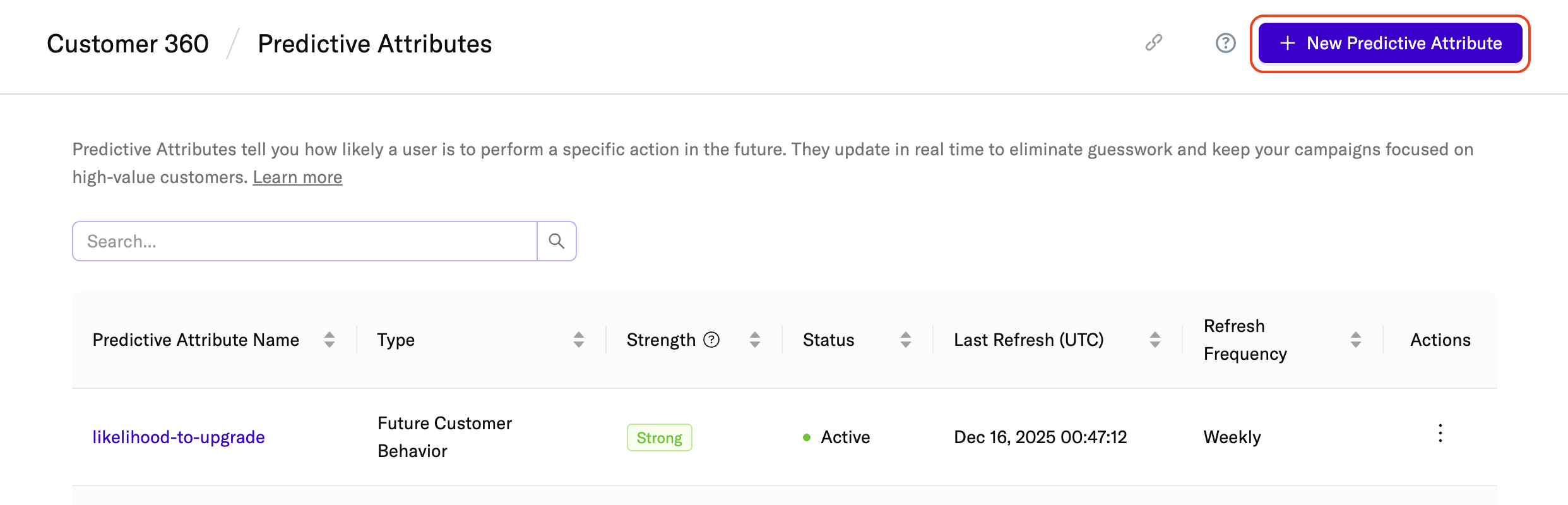 Once the prediction has finished calculating, you can use it to create audiences or activate personalized campaigns in downstream tools. Learn more in Create an Audience with Next Best Actions (Early Access).