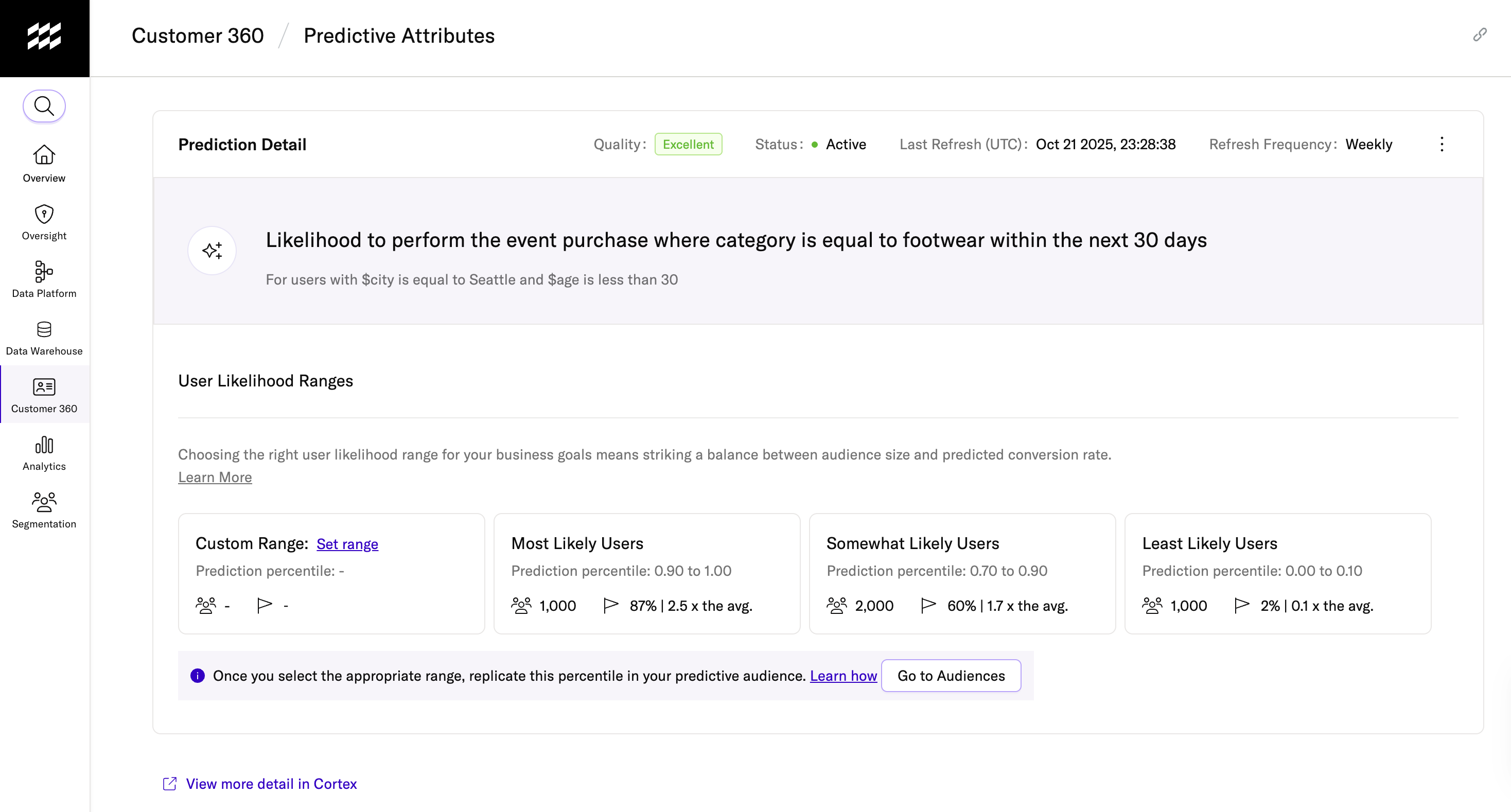 Once you’ve identified a likelihood range, you can use it to build predictive audiences.