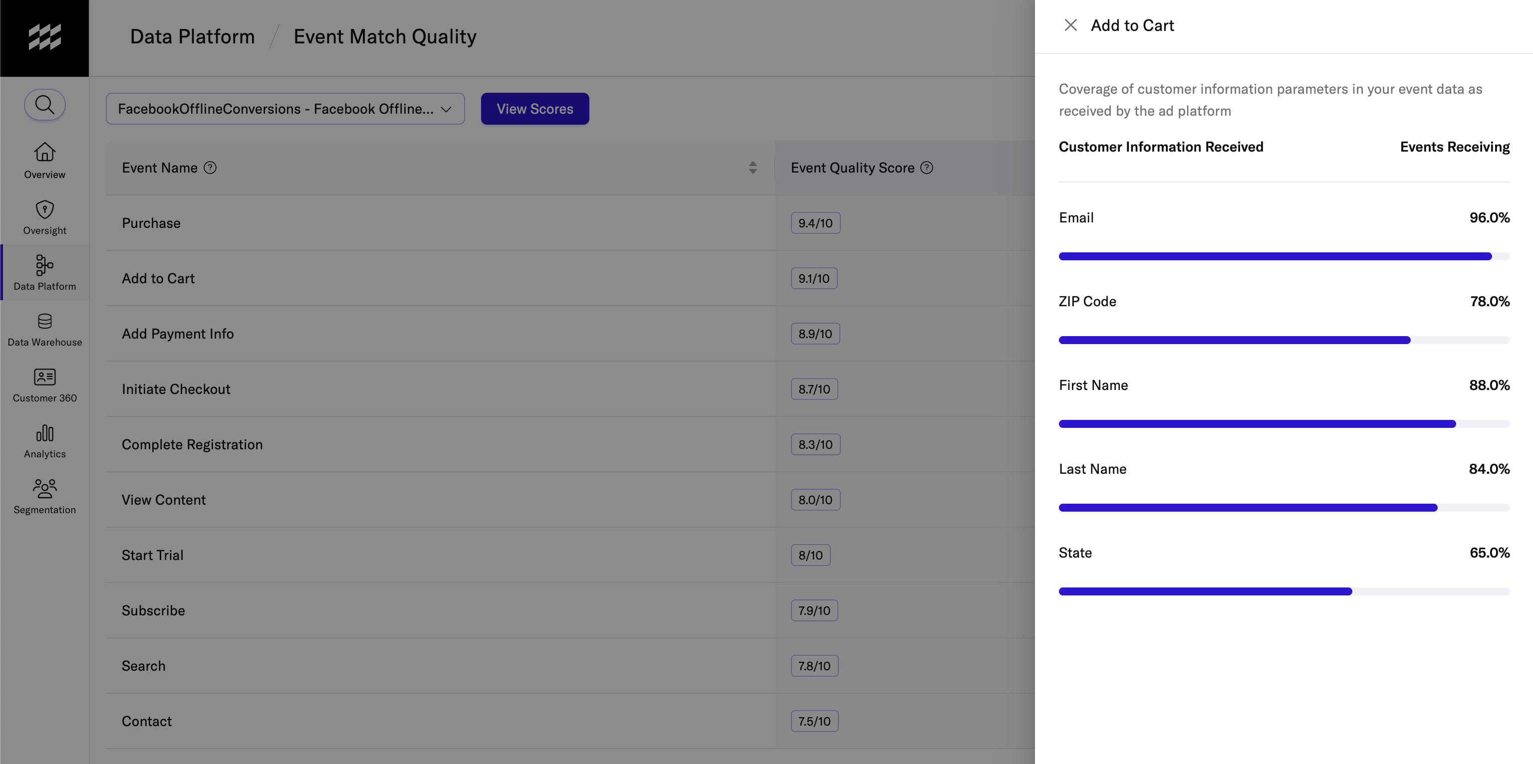 2. Using the left-hand navigation, go to Data Platform > Event Match Quality.