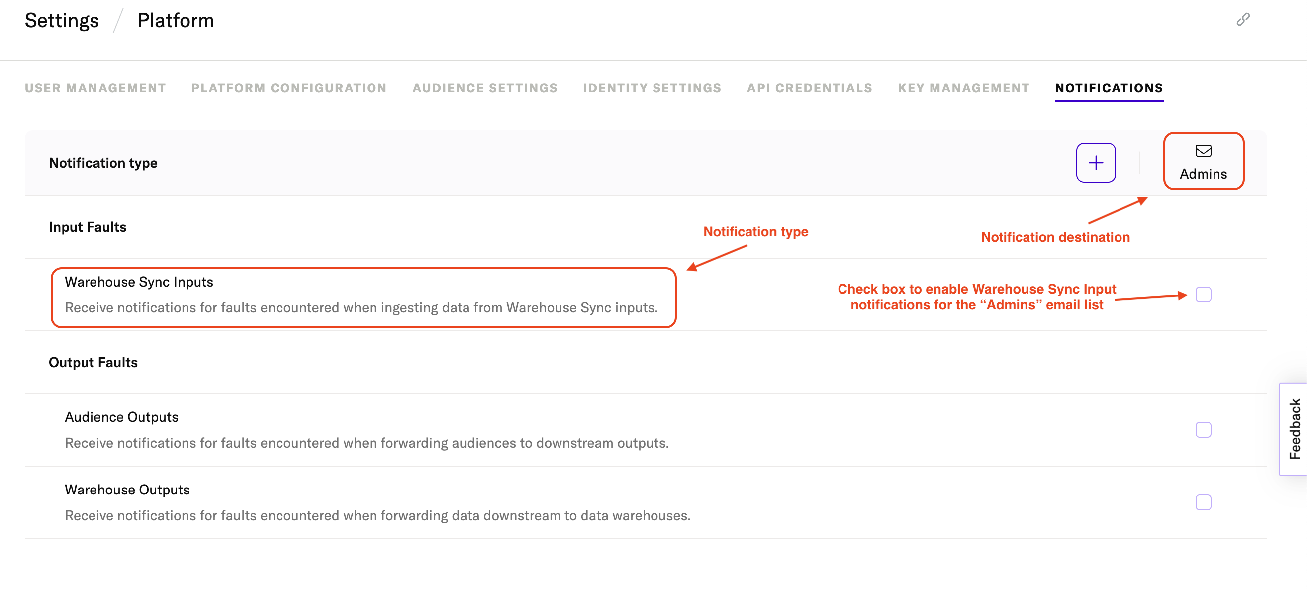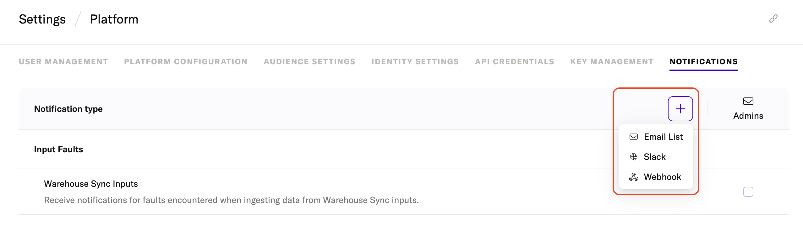 Warehouse Inputs | Notifications are triggered when mParticle attempts to ingest data from the warehouse according to your sync schedule. |
