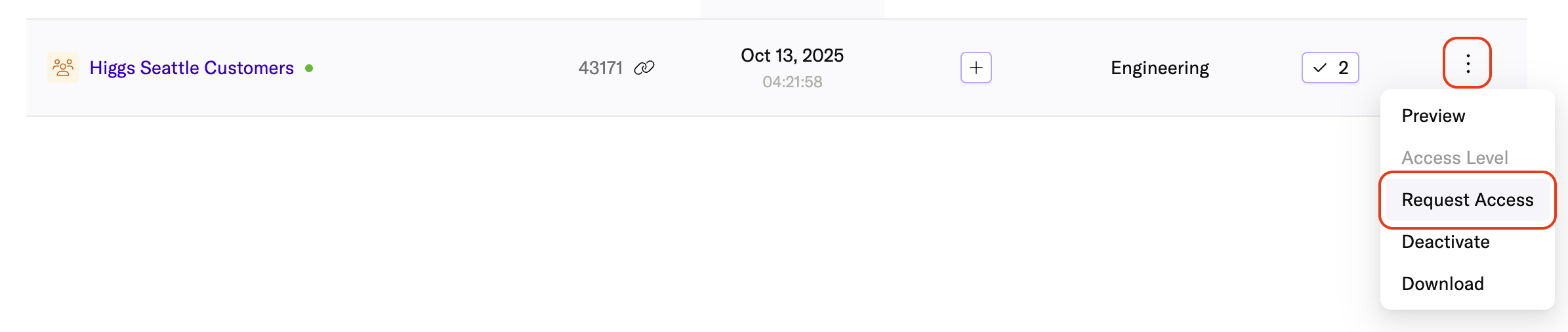 If you need additional access to a shared audience (for example, to connect it to an output or use it as membership criteria for a new audience) you can request a higher access level from the audience’s owner.