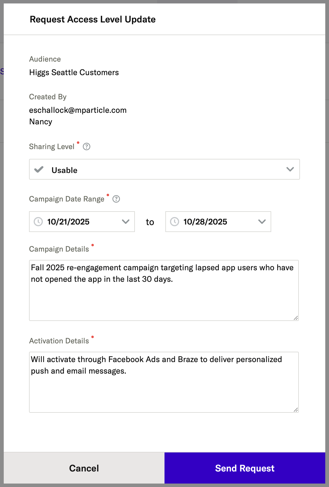 After submitting your request, the audience owner receives an email notification and can approve or deny it. Once the request is reviewed, you’ll receive an email confirming the status of your request.