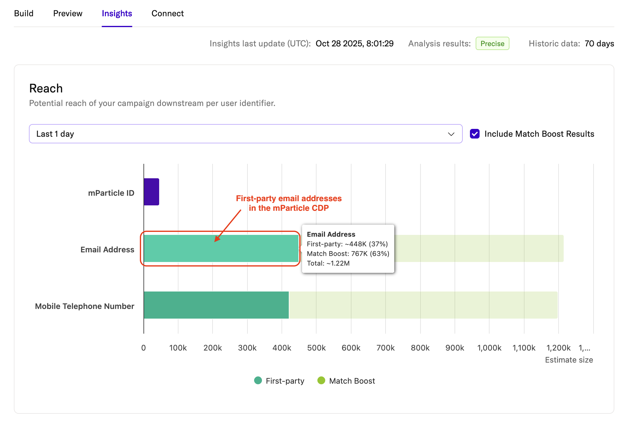 Hover your cursor over the “Third-party data” segment to see how many identifiers were enriched through Match Boost: